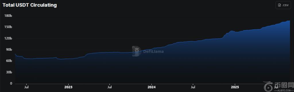 尽管如此,USDT 的市值为 1680 亿美元,Circle 的 USDC 市值为 703.7 亿美元——两者均创下历史新高。因此,这两种货币的实体规模更大,但各自控制的市场份额正在发生变化。