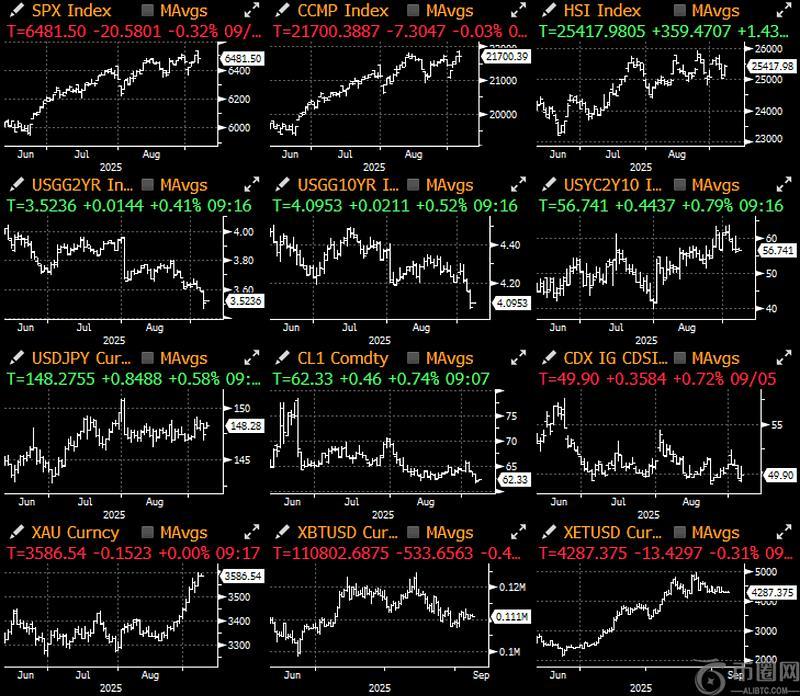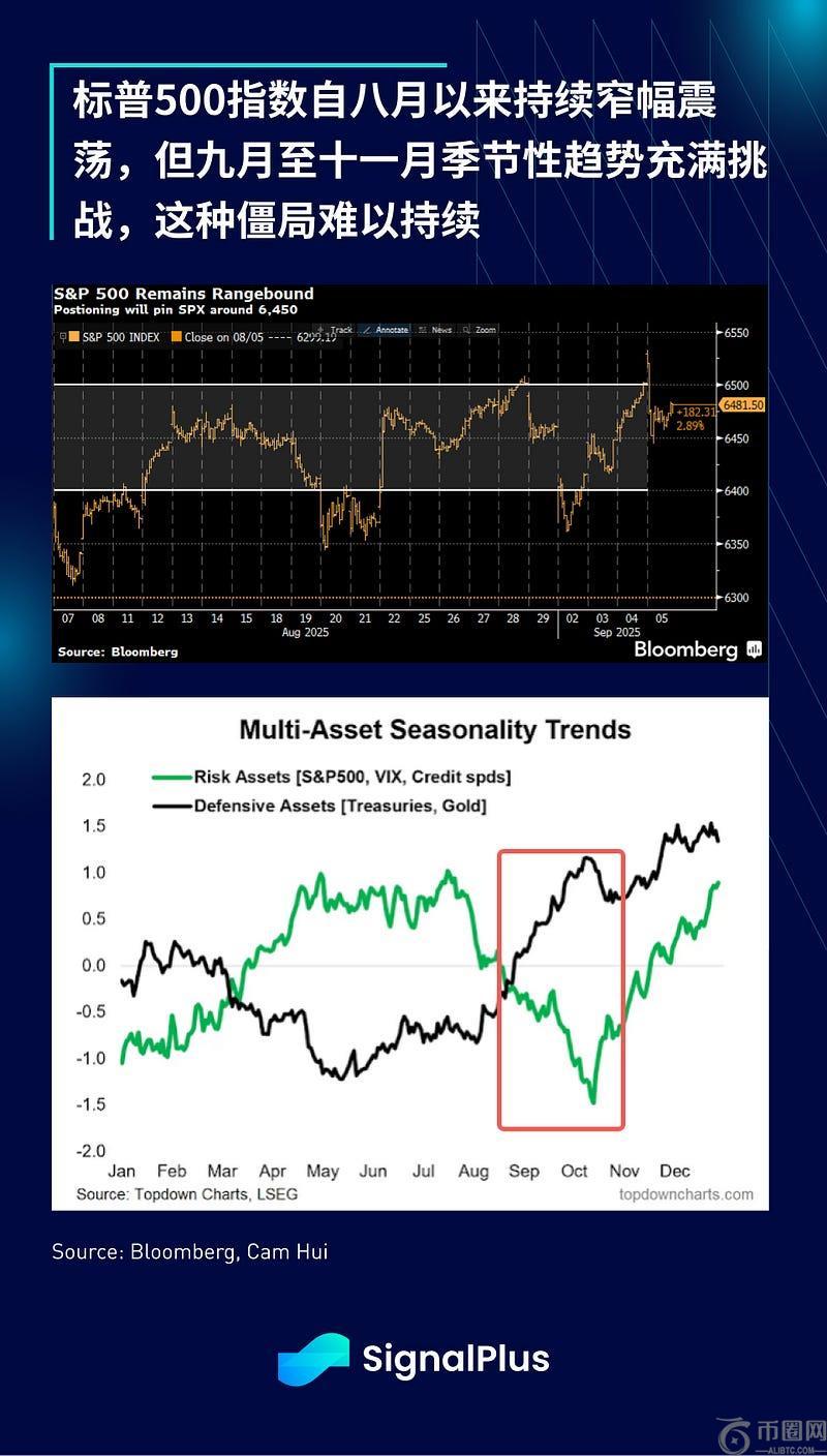 股市整体表现平稳,英伟达的疲软被其他龙头股和防御性板块抵消,标普500指数重回夏末交易区间中轨。然而,考虑到季节性趋势挑战叠加摩根大通报告显示对冲基金净杠杆率处于高位,预计未来两个月市场波动性将加剧。