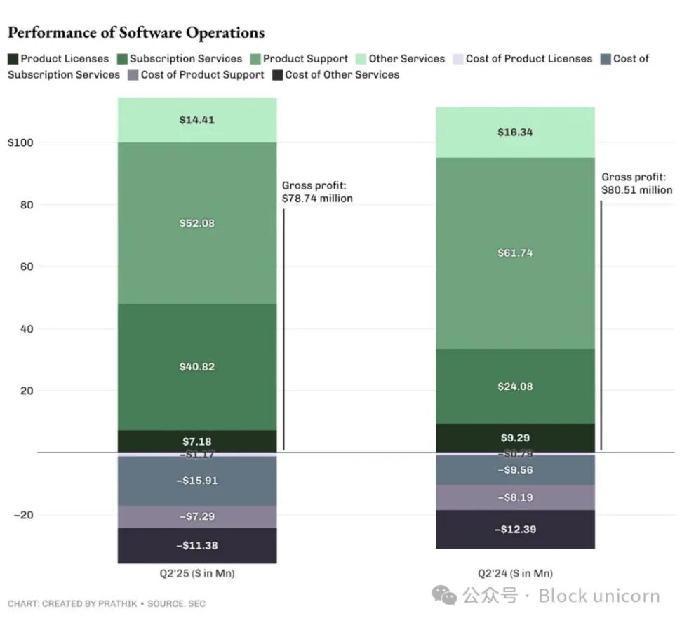 不包括比特币重估,底层运营收入约为 3200 万美元,软件收入的健康利润率约为 28%,但相对于加密货币的意外收益微不足道。
