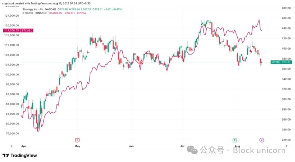 尽管 Strategy 的盈利创下了纪录,但其股价在第二季度财报公布后有所下跌,因为市场已经消化了比特币带来的意外收益。随后,42 亿美元的 STRC 市值股票出售消息进一步压低了股价。这种反应也反映出投资者的理解,这些并非营业利润,而是可能会逆转的市值调整。