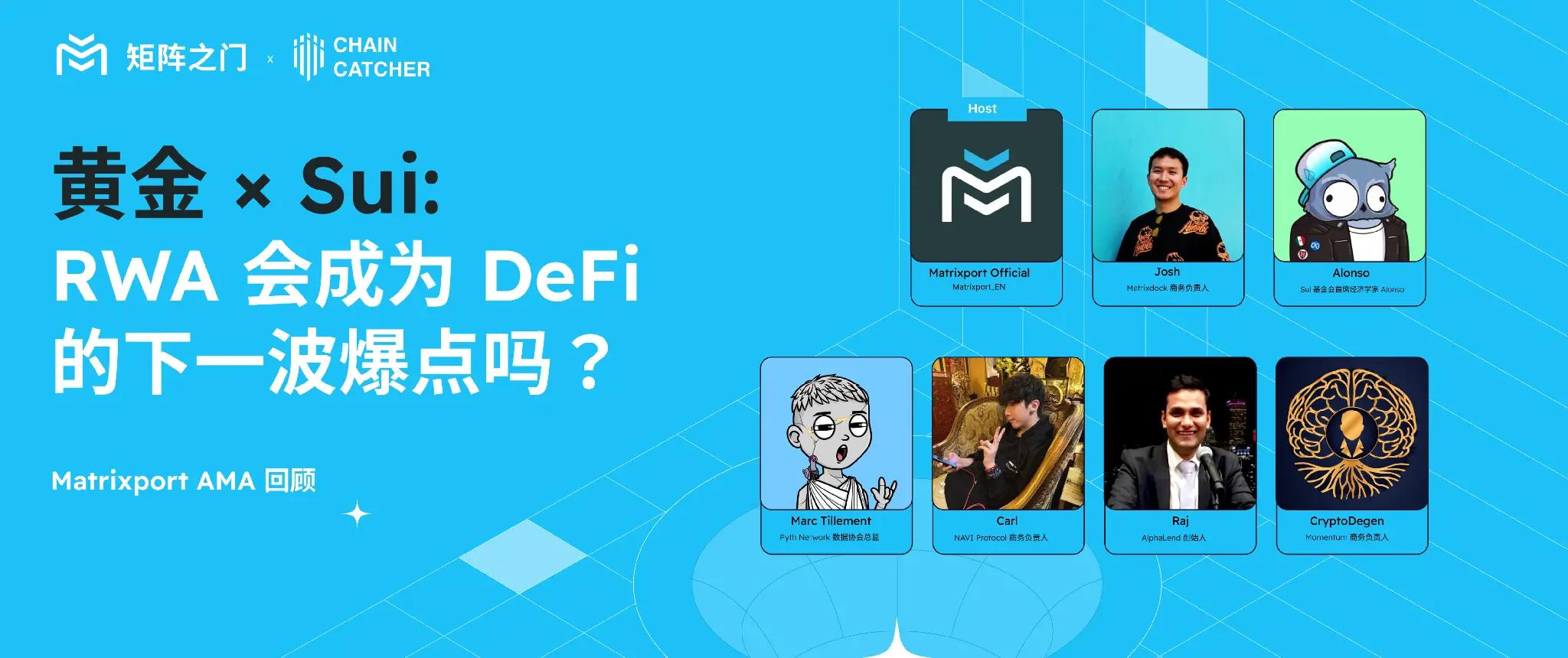 2025 年 9 月 3 日,Matrixport 官方举办了主题为「黄金 x Sui:RWA 会成为 DeFi 的下一波爆点吗?」的 AMA 活动,集结多位生态关键人物——Matrixdock 商务负责人 Josh、Sui 基金会首席经济学家 Alonso、Pyth Network 数据协会总监 Marc Tillement、NAVI Protocol 商务负责人 Carl、AlphaLend 创始人 Raj 及 Momentum 商务负责人 CryptoDegen 作为嘉宾,深入探讨黄金代币 XAUm 如何在 Sui 上拓展 DeFi 应用,并强化其“亚洲第一数字黄金”的定位。