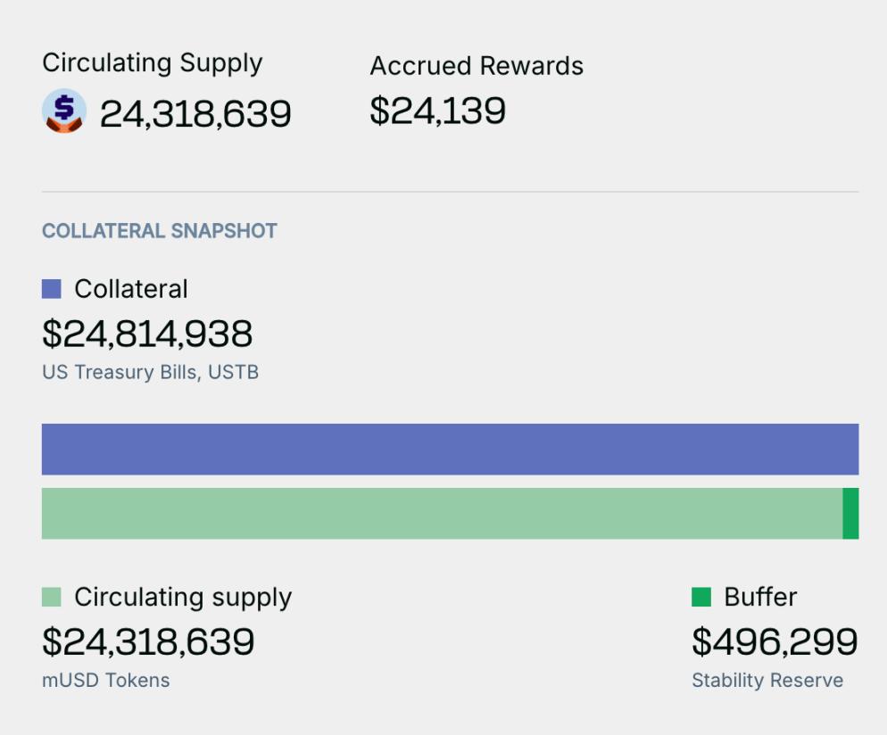 对稳定币来说,储备构成至关重要,虽然 Mask 尚未明确指出 mUSD 的储备,但 M0 作为技术支持方,实施链上储备证明机制,允许用户实时验证 mUSD 的发行量与储备资产的对应关系。