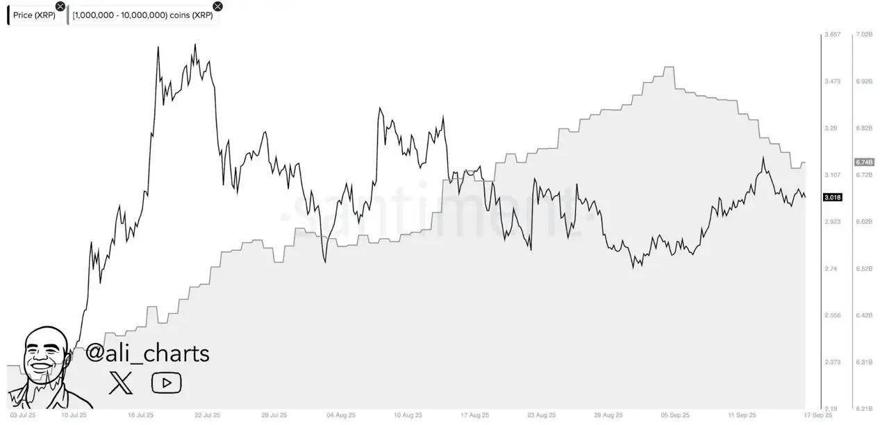 然而,风险依然存在:未能突破阻力位、宏观经济逆风或监管延迟都可能阻碍其发展或导致横盘整理。许多人警告称,“50倍收益”过于雄心勃勃,除非所有有利因素都能迅速汇聚。此外,据报道鲸鱼已抛售约 2 亿 XRP在过去的两周里。
