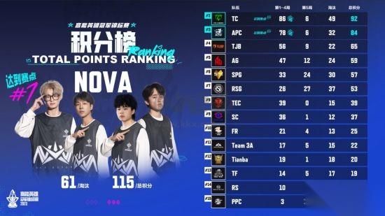 NOVA战队在本届高能英雄冠军锦标赛的夺冠之旅也并非一帆风顺。NOVA战队从第一局仅拿到两分的惨淡开局,在第二局逐渐找到手感,拿下15个淘汰。随后在第三局、第四局,NOVA战队的小吱选手发挥出色,NOVA战队也一路势如破竹,从积分榜第11位一路上升至积分榜第2位。在第五局中,面临TC、APC、NOVA都拿到赛点的情况下,NOVA战队通过合理的战术选择、冷静的临场判断,最终笑到最后,斩获首个高能英雄冠军锦标赛冠军。