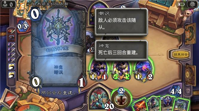 好了,反正每个职业我都会玩几次,所以先从萨满的开始挑战吧!萨满的初期构筑比较杂乱,可以选择走法术流、鱼人流、图腾流、过载流。我选择的是法术流派,遇到的第一个boss是妖术领主玛拉卡斯,技能和法师的一样,神龛效果是0-1的嘲讽。需要注意的是,所有的神龛可以打死,但会在三个回合后复活。
