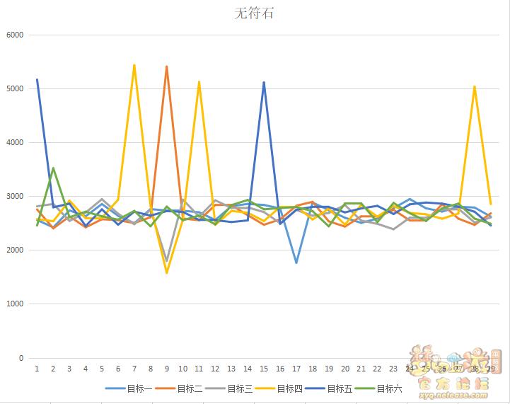 而硬说两者不同的话,就是携带百步穿杨的符石之后,伤害结果浮动较大,这点我们可以参考折线图。虽然携带了百步穿杨符石之后伤害超过3000的情况较多(排除暴击情况),但因为是两场战斗,不具备对比性。