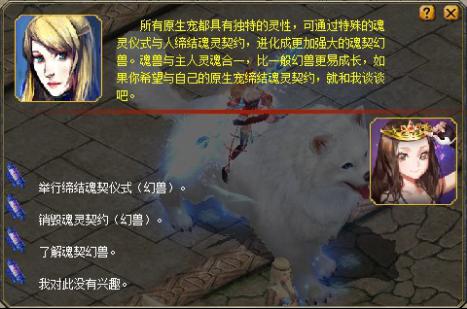 而在此之前创建的角色,可前往卡诺萨城(326,502)格蕾琳娜处选择一只本职业原生宠进行缔结魂契仪式,转化为魂契幻兽。