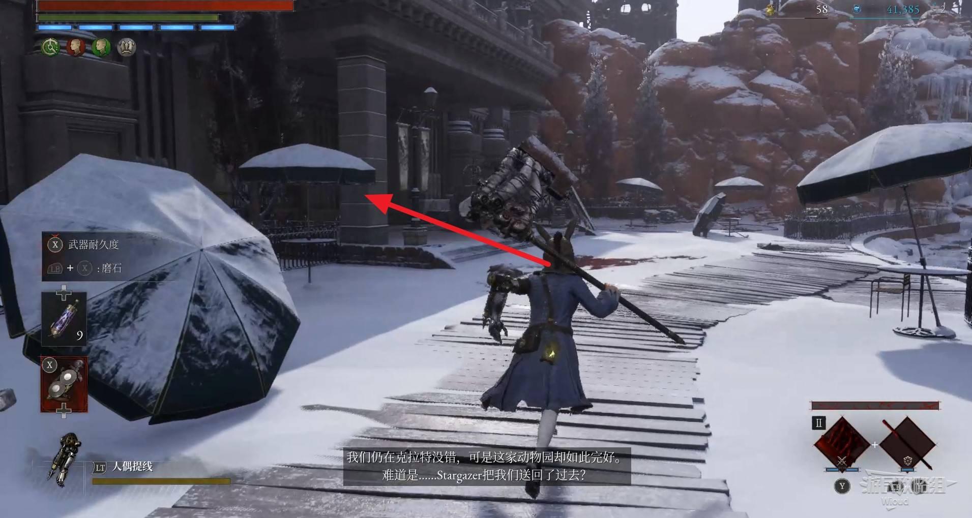 随后爬梯子往下走,下面一个带遮阳棚的小桌子上可捡到【动力曲柄】。