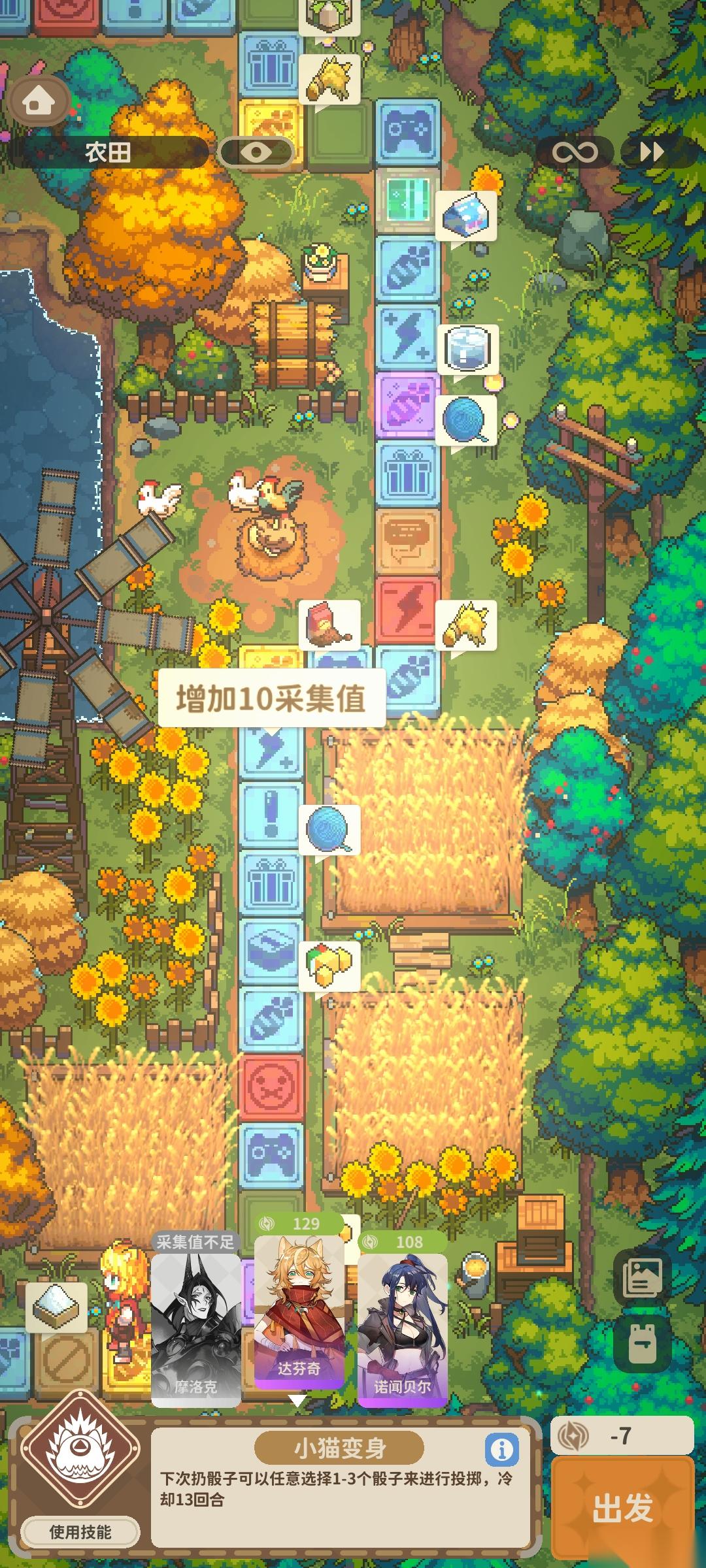 开始先选择地图,根据你想要的食材来选择,下面可能获得的物品是用来送给角色的好感度礼物。提升好感度可以提升技能等级和基础数值。