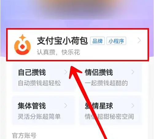 打开支付宝APP,点击【支付宝小荷包】的小程序。