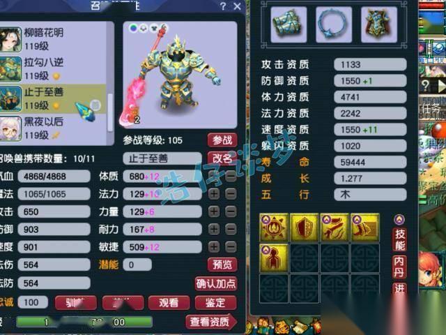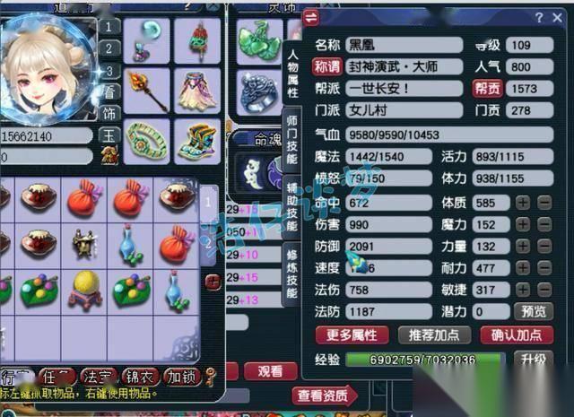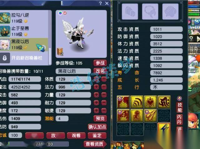 好了,这个109级女儿村展示完毕,愤怒6特技加身,细节搭配非常不错。宝宝类型也比较齐全,无论是杀难度任务还是打PK都够用了,各位喜欢吗