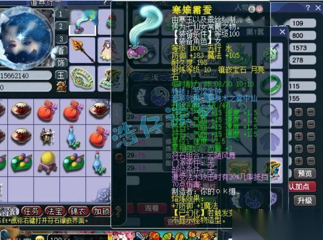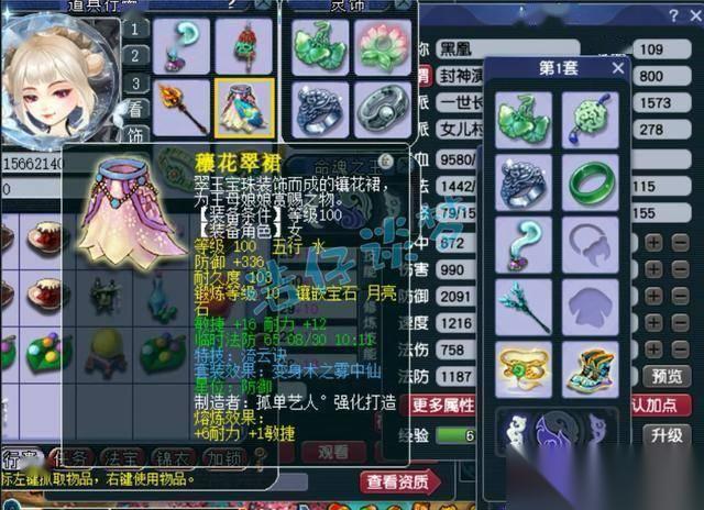 100级带流云诀的雾中仙套女衣,熔炼后敏耐双加35,打了10锻月亮石。