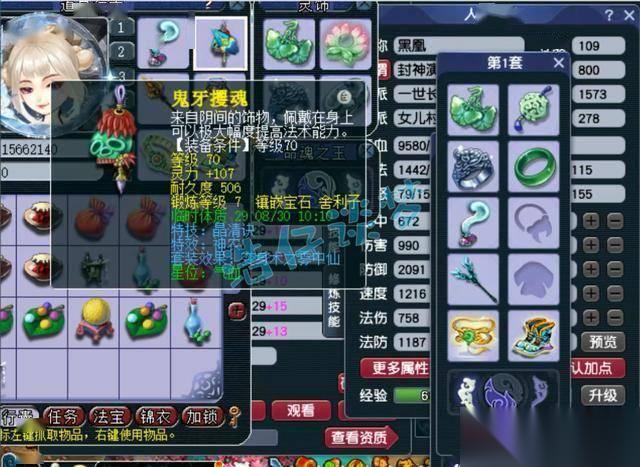 109级女儿村打符之后的面板属性,在拥有2091防御的同时,还有1187的法防,她并没有一味的追求速度,而是选择了抗性。速度属性被遮住了,下边图片可以看到是1216的速度。