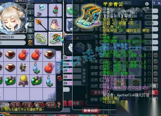 100级带慈航普度的雾中仙套鞋子,打了10锻黑宝石。