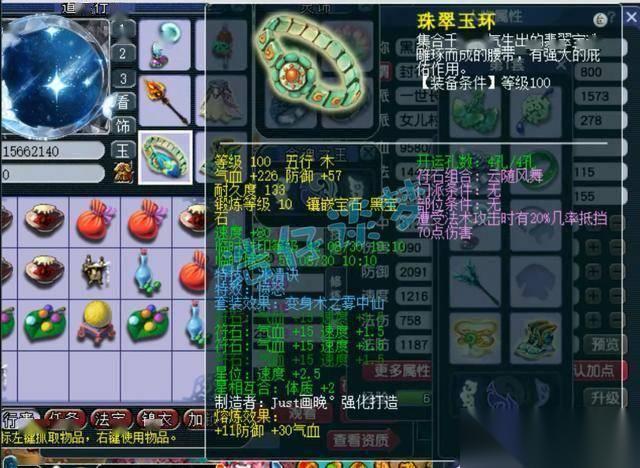 100级带冰清诀的愤怒雾中仙套腰带,打了10锻黑宝石。