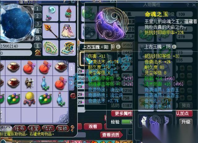 命魂之玉前排追求了奇袭法术,后排防御法防也是附加奇袭法术1%。